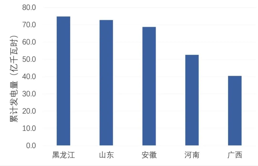 累計裝機容量排名前五的省份是廣東、山東、江蘇、浙江、黑龍江,分別是422萬千瓦、411萬千瓦、297萬千瓦、284萬千瓦、259萬千瓦;新增裝機容量排名前五的省份是,廣東、黑龍江、遼寧、廣西、河南,分別是45萬千瓦、37萬千瓦、33萬千瓦、26萬千瓦、24萬千瓦。
